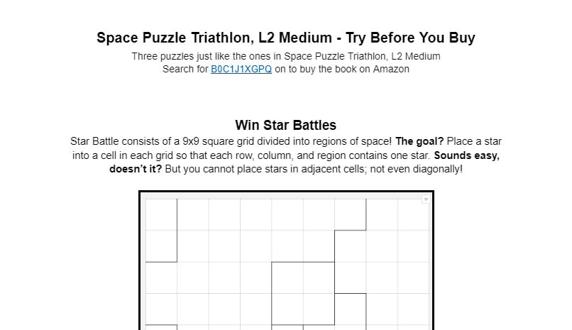 Want to win Star Battles, create Galaxies & Build a ByPass? Try out these three puzzles just like the ones in Space Puzzle Triathlon, L2 Medium (B0C1J1XGPQ on Amazon). This is a digital download.