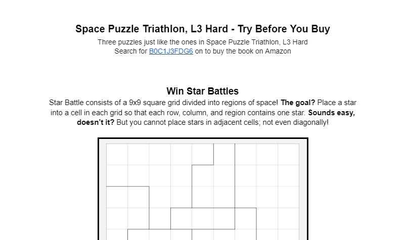 Want to win Star Battles, create Galaxies & Build a ByPass? Try out these three puzzles just like the ones in Space Puzzle Triathlon, L3 Hard (B0C1J3FDG6 on Amazon). This is a digital download.